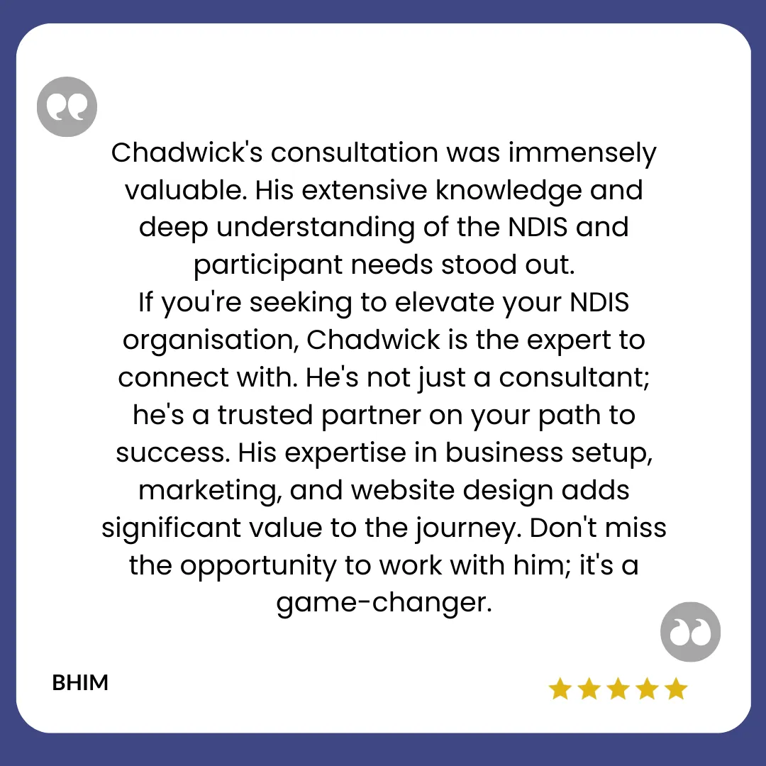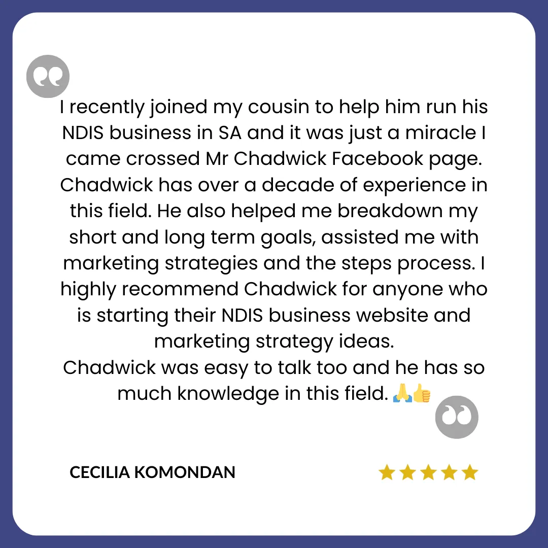 Chadwick Digital is an Australian registered charity, not for profit organisation that advocates for NDIS providers and those living with a disability. We provide Free training, strategy sessions and discounted products to make a positive impact on the disability sector.